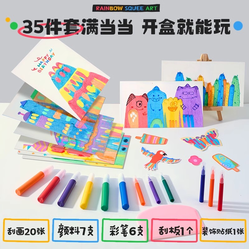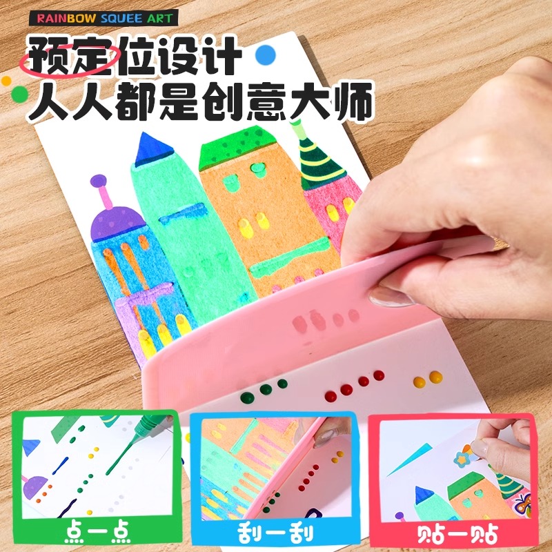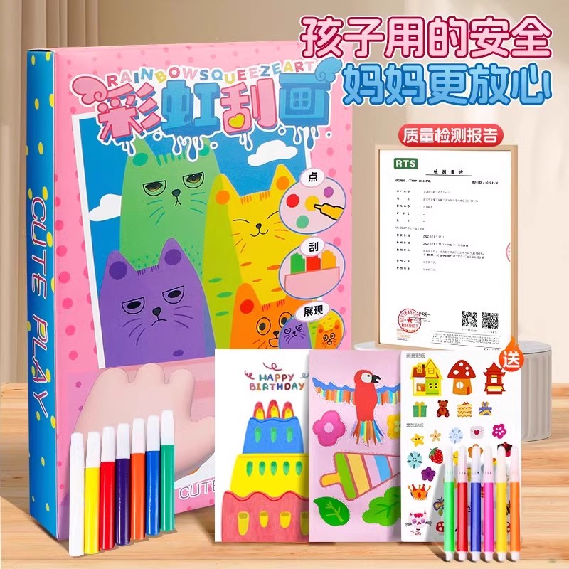 彩虹点彩刮画diy儿童趣味书签彩色手工画男孩玩具女孩新年礼物品