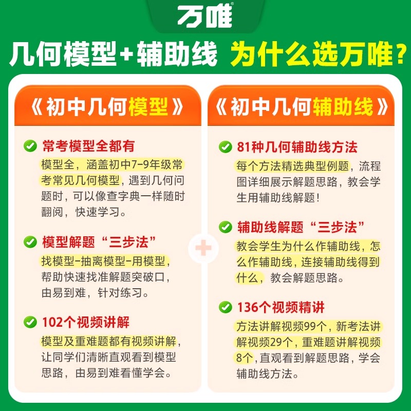 万唯中考2025初中几何模型辅助线七下八下九年级数学压轴题学霸解题辅助线秘籍专项训练习中考必刷题资料书基础万维