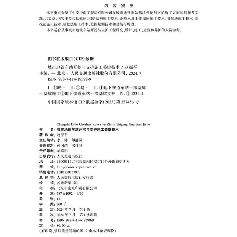 社9787114193989 人民交通出版 城市地铁车站开挖与支护施工关键技术 赵振平