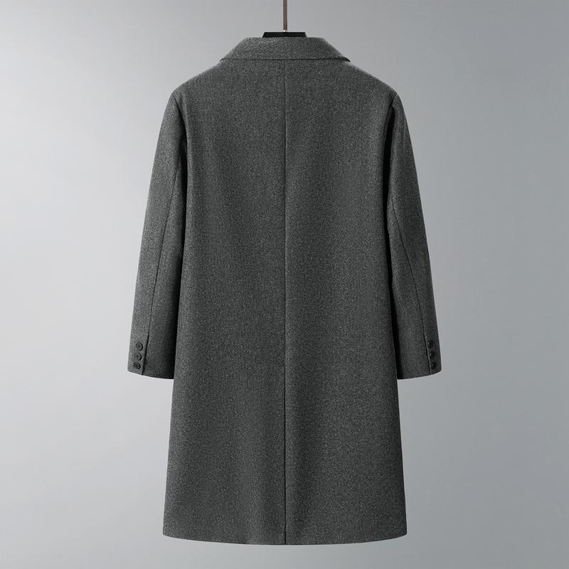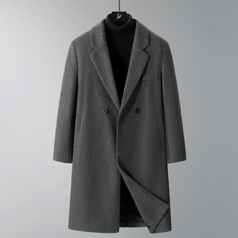 韩版 长款 呢子加厚风衣外套 2025春秋季 V37黑色高级感毛呢大衣男款