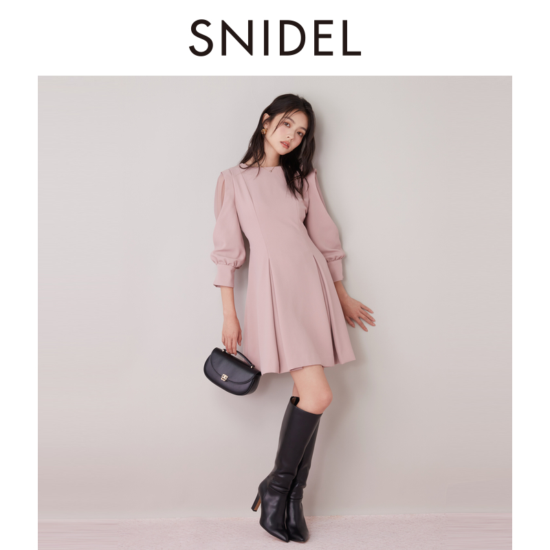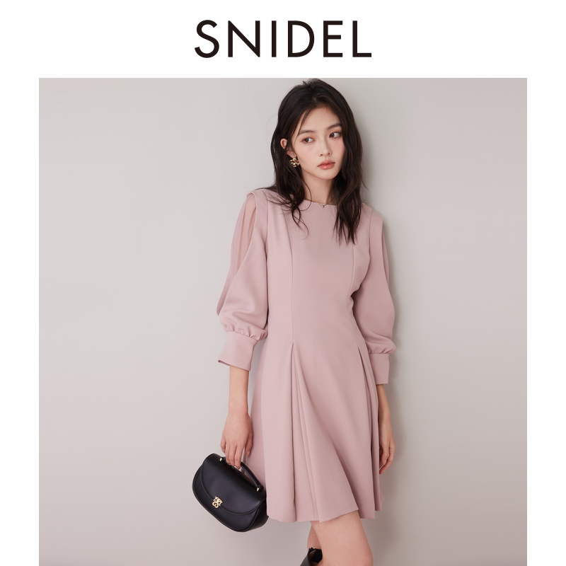 SNIDEL秋冬款 气质圆领薄纱拼接收腰A字连衣裙SWFO245062