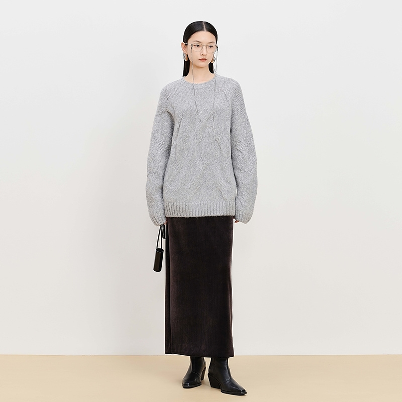 圆领100%纯山羊绒衫 灰色宽松打底上衣 女毛衣秋冬假两件拼色针织衫