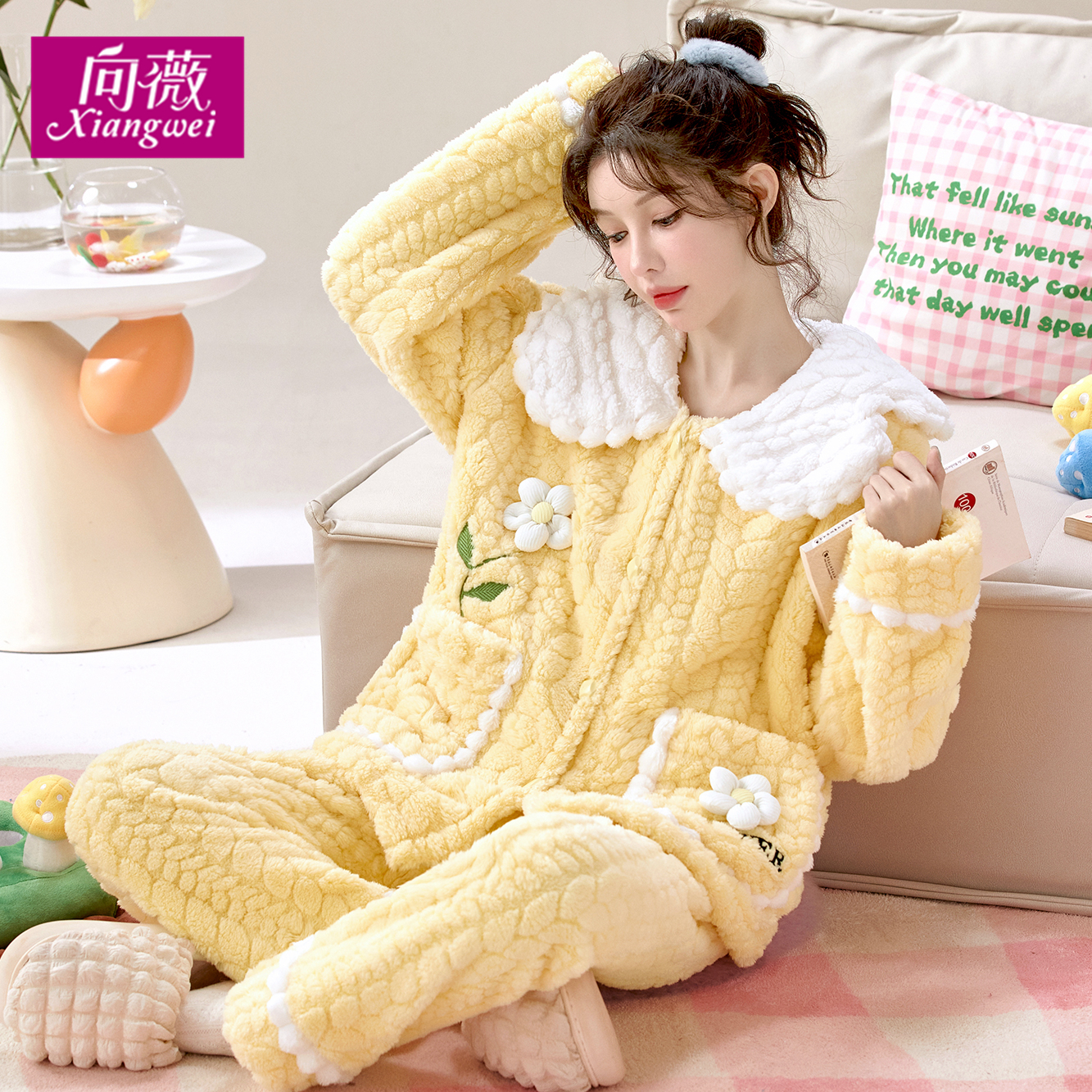 柔软舒适暖绒秋冬可外穿法兰绒家居服甜美可爱毛绒珊瑚绒睡衣套装