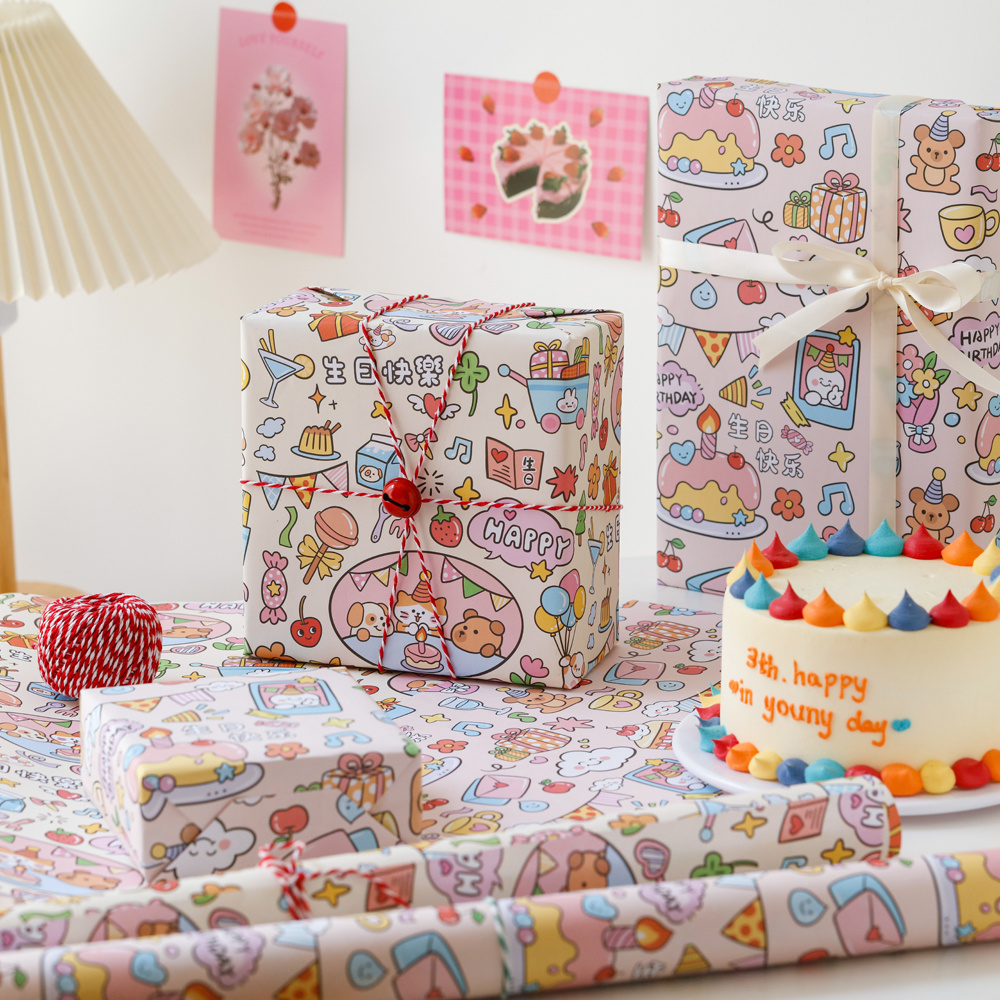 扮包书皮 饰纸少女心甜美装 卡通可爱生日礼物包装 纸大尺寸礼盒手工diy材料礼品纸高级感装