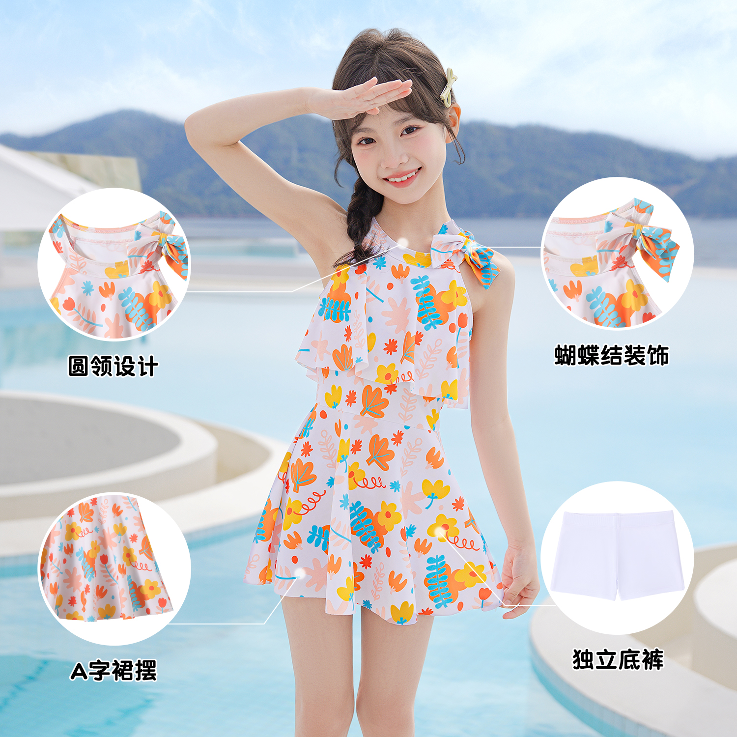 备女童 中大童儿童专业游泳训练装 儿童泳衣女孩连体裙式 2025年新款