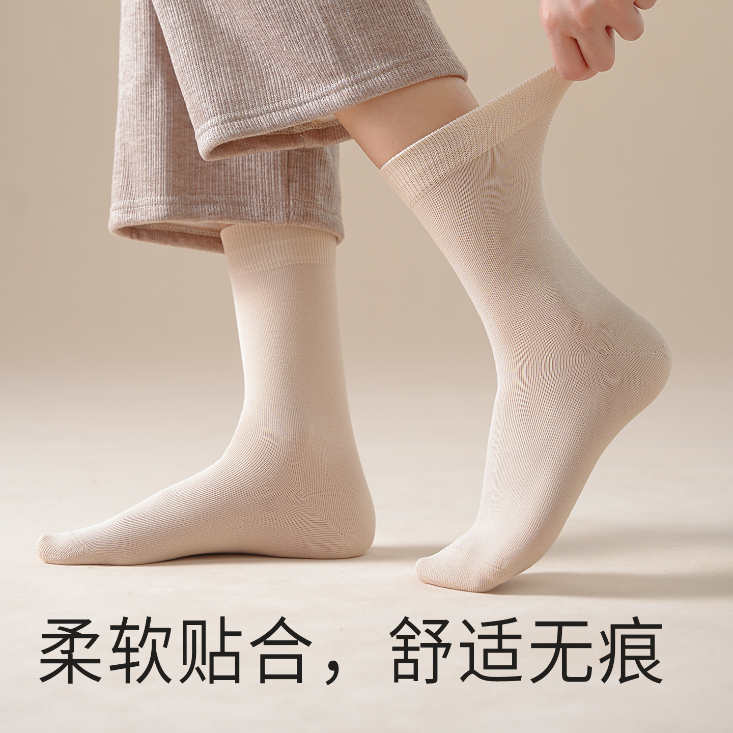 袜子女长筒袜秋冬款 纯棉纱线防臭抗菌保暖吸汗纯色女士无骨中筒袜