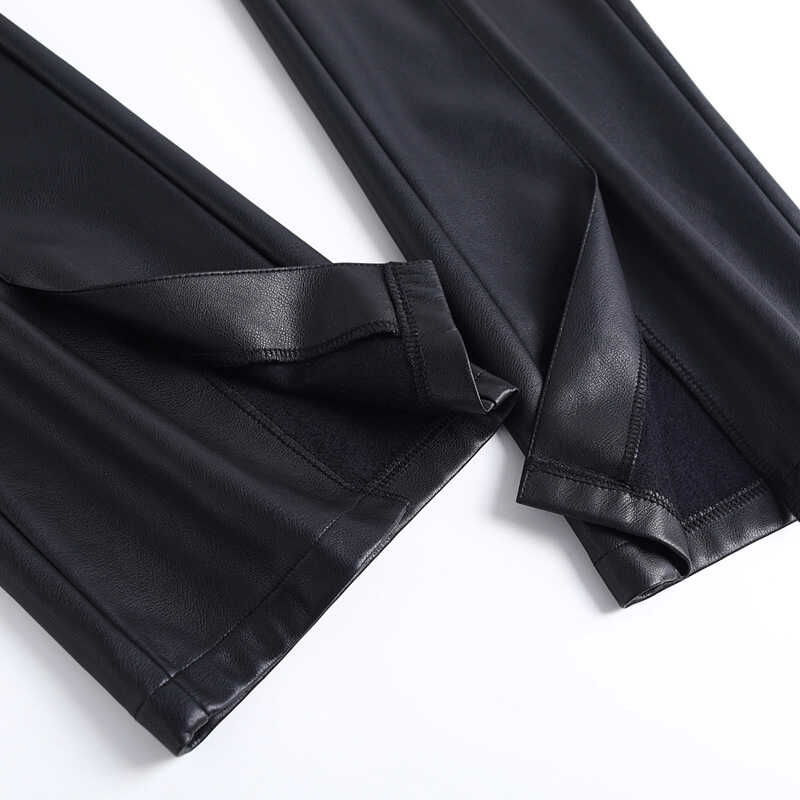 通勤休闲裤 PU皮裤 高腰气质显瘦开叉喇叭长裤 女秋冬2025新款 微喇裤