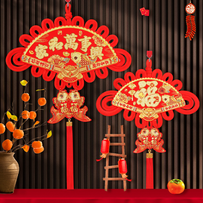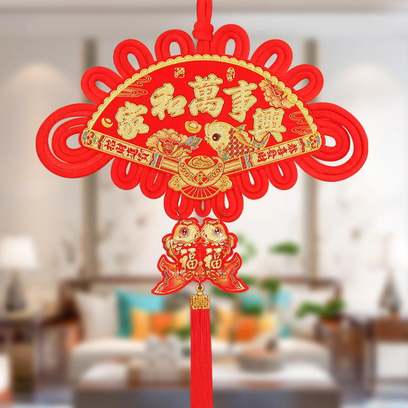 双面扇形中国结福字挂饰客厅大号高档电视背景墙玄关装 饰品乔迁