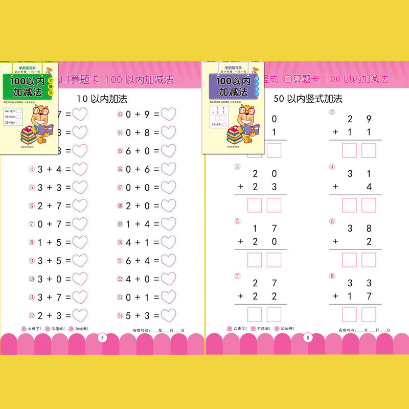 100以内加减法专项练习本子幼小衔接天天练 一百 二十以内加减法练习册幼儿园每日一练全横式 每天50道口算题卡 数学10 竖式