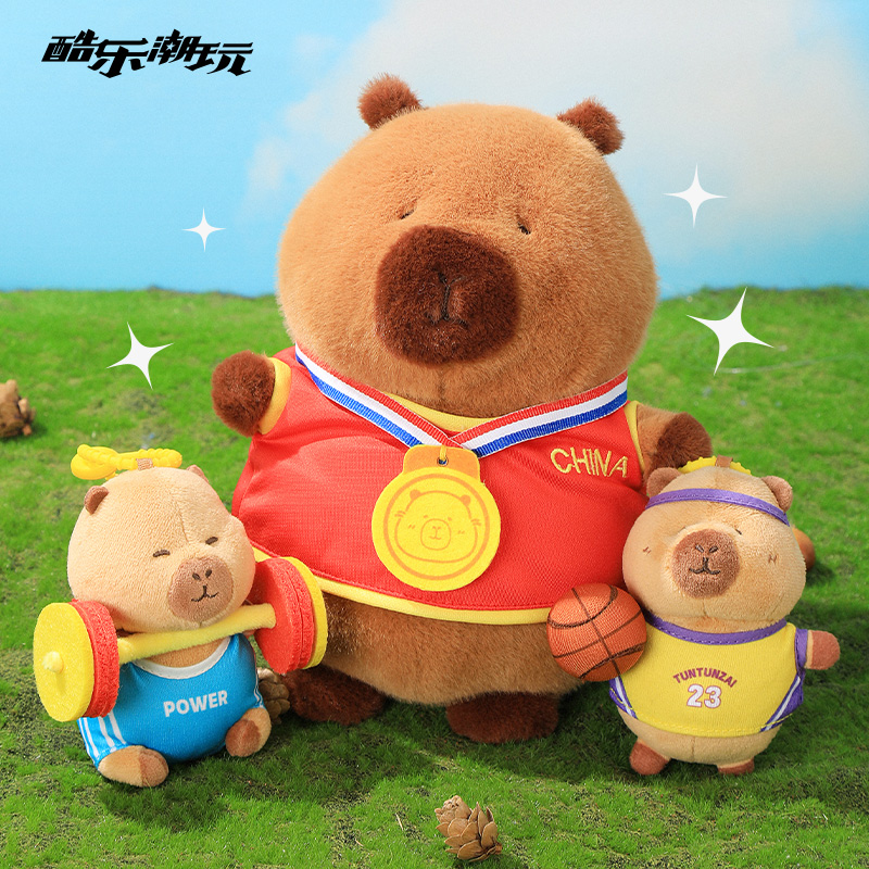 酷乐潮玩水豚卡皮巴拉公仔豚豚崽奥运会系列毛绒玩具 我们是冠军