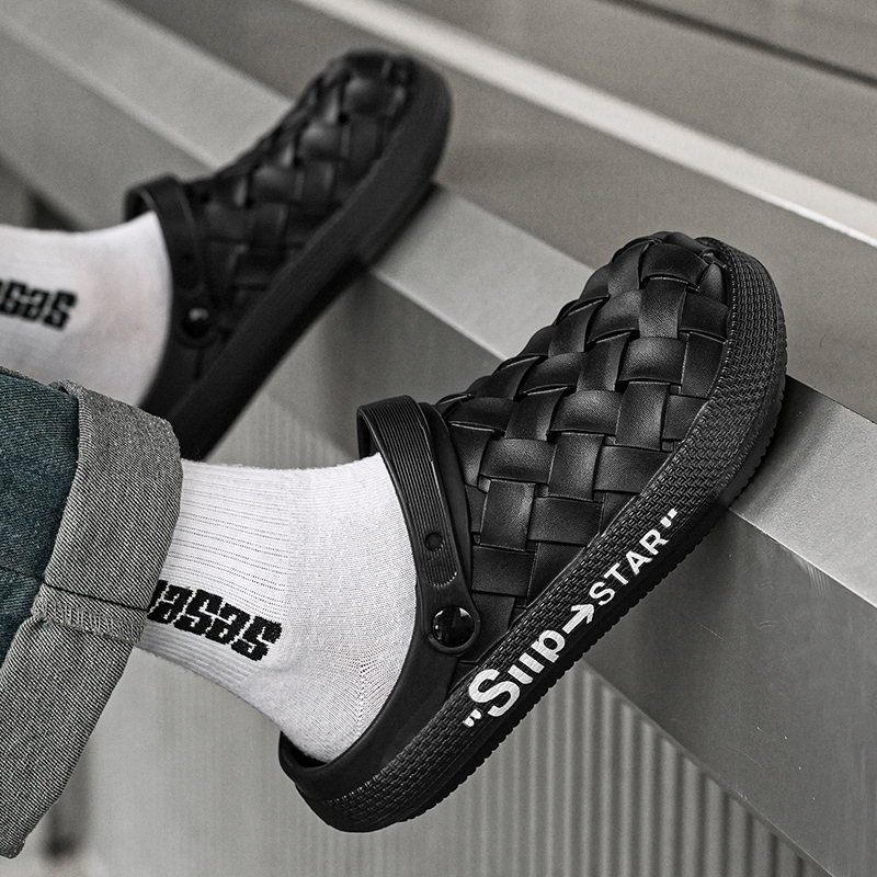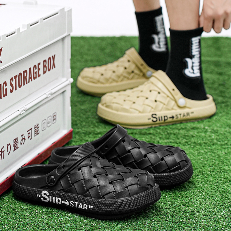 沙滩鞋 男防滑软底包头拖鞋 男外穿大码 休闲凉鞋 明星同款 夏季 洞洞鞋