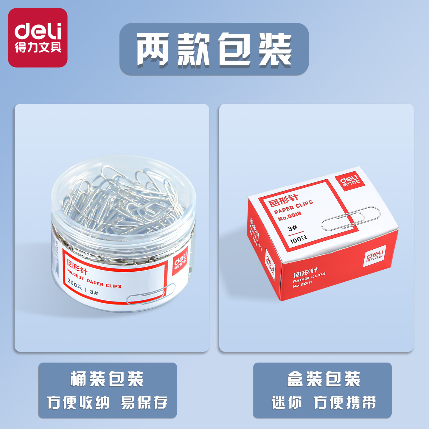 得力回形针曲别针大号彩色莫兰迪钢芯材质牢固耐用光滑不伤纸U型针银色财务票据夹试卷夹办公用品文件易整理