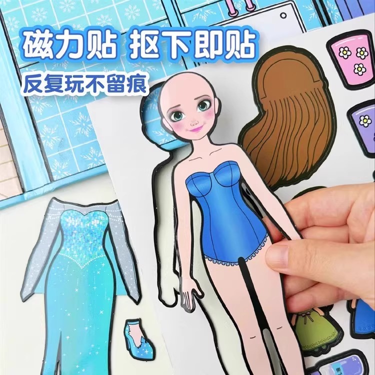 巨无霸超大号磁力安静书新款 贴纸儿童玩具 女孩爱莎公主免裁剪换装