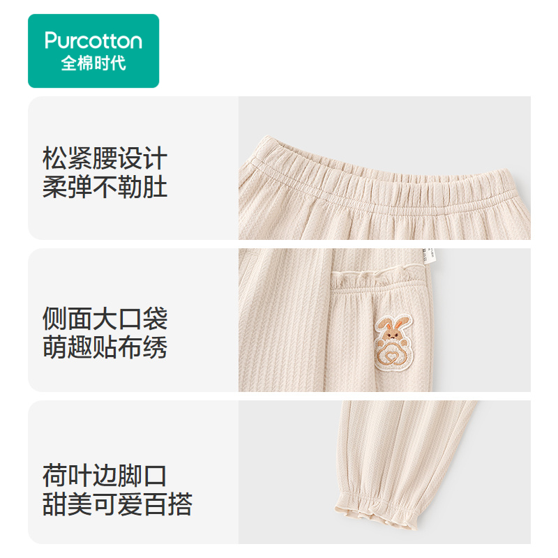 杏色提花秋冬新款 全棉时代儿童长裤 卫裤 束脚裤 女幼童针织长裤
