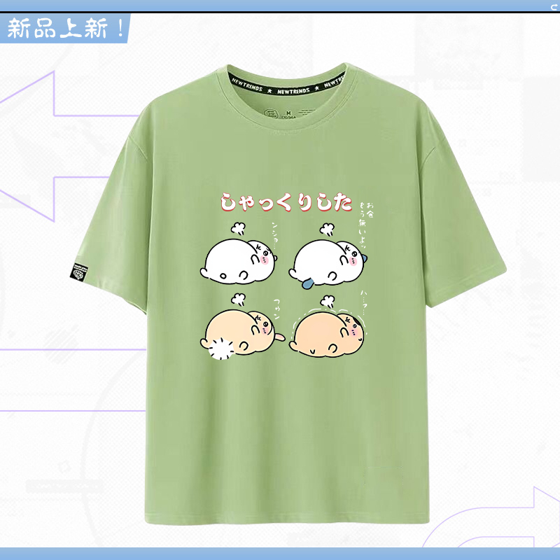 chiikawa吉伊咔哇干饭王胖嘟嘟T恤衫 衣服LN 乌萨奇小八男女短袖
