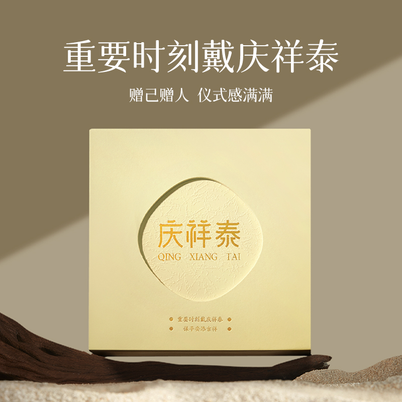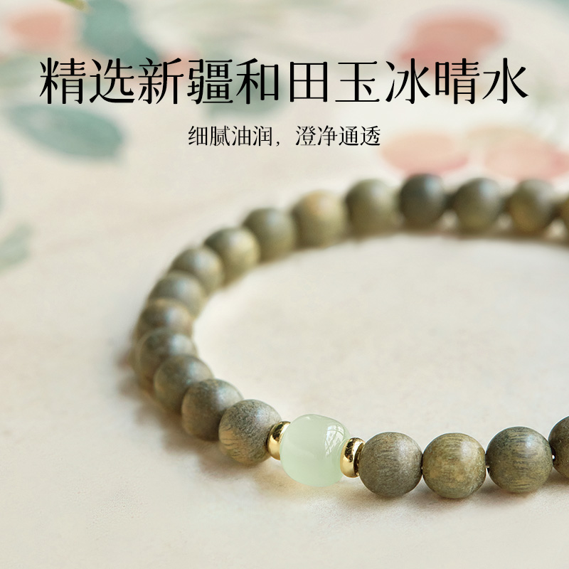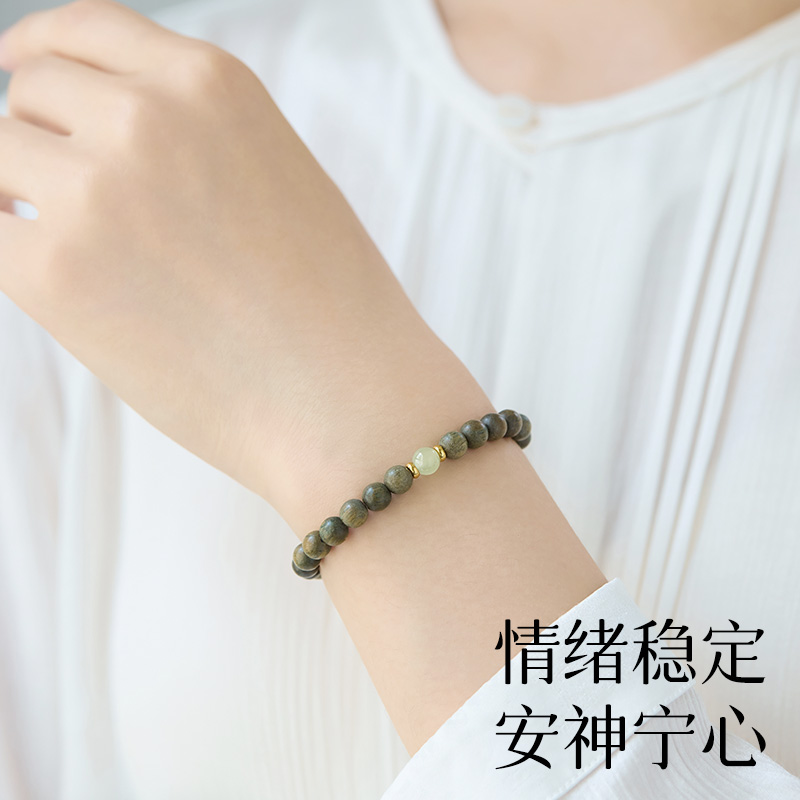庆祥泰天然绿檀木手串女款 真品官方旗舰店木质饰品高端和田玉手链