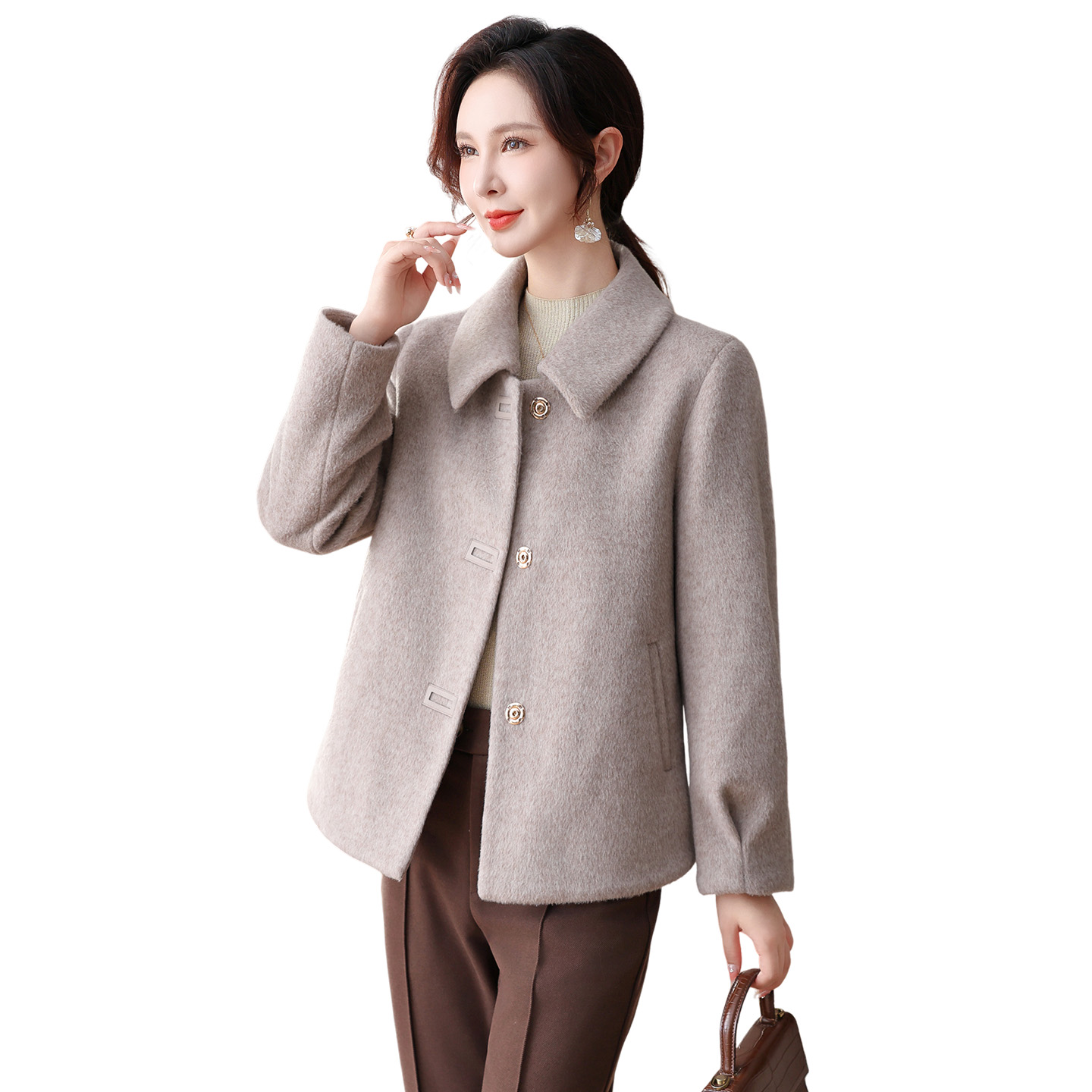 翻领宽松中老年短款 雅鹿妈妈装 高贵时尚 2025秋季 毛呢上衣 外套女款