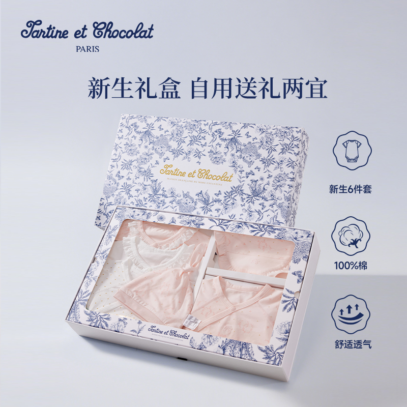 tartineetchocolat法国巧克力童装 25秋冬女婴连体服六件礼盒套装