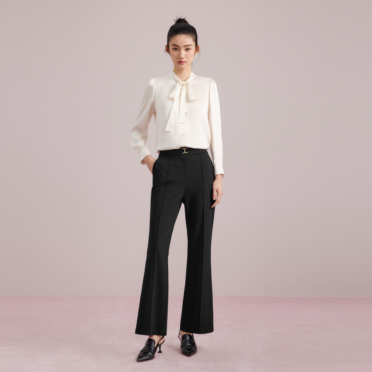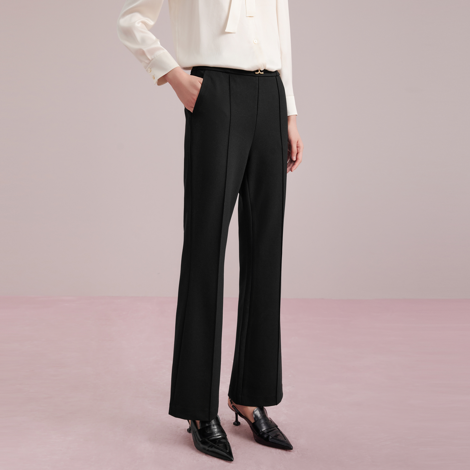新款 25年秋季 子黑色高腰通勤复古优雅微喇裤 莱茵福莱尔裤