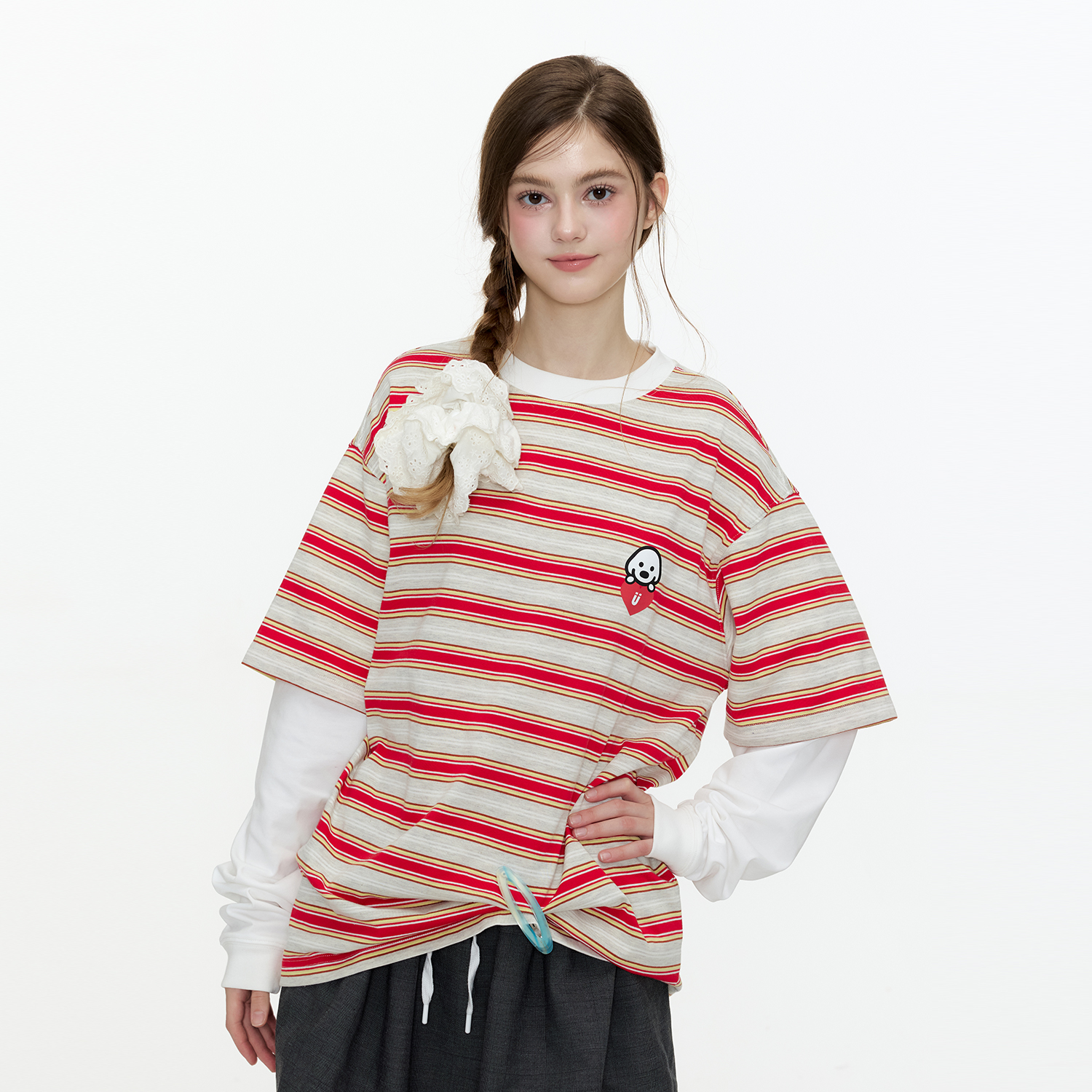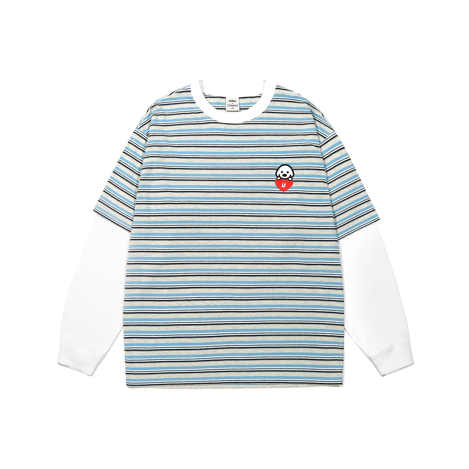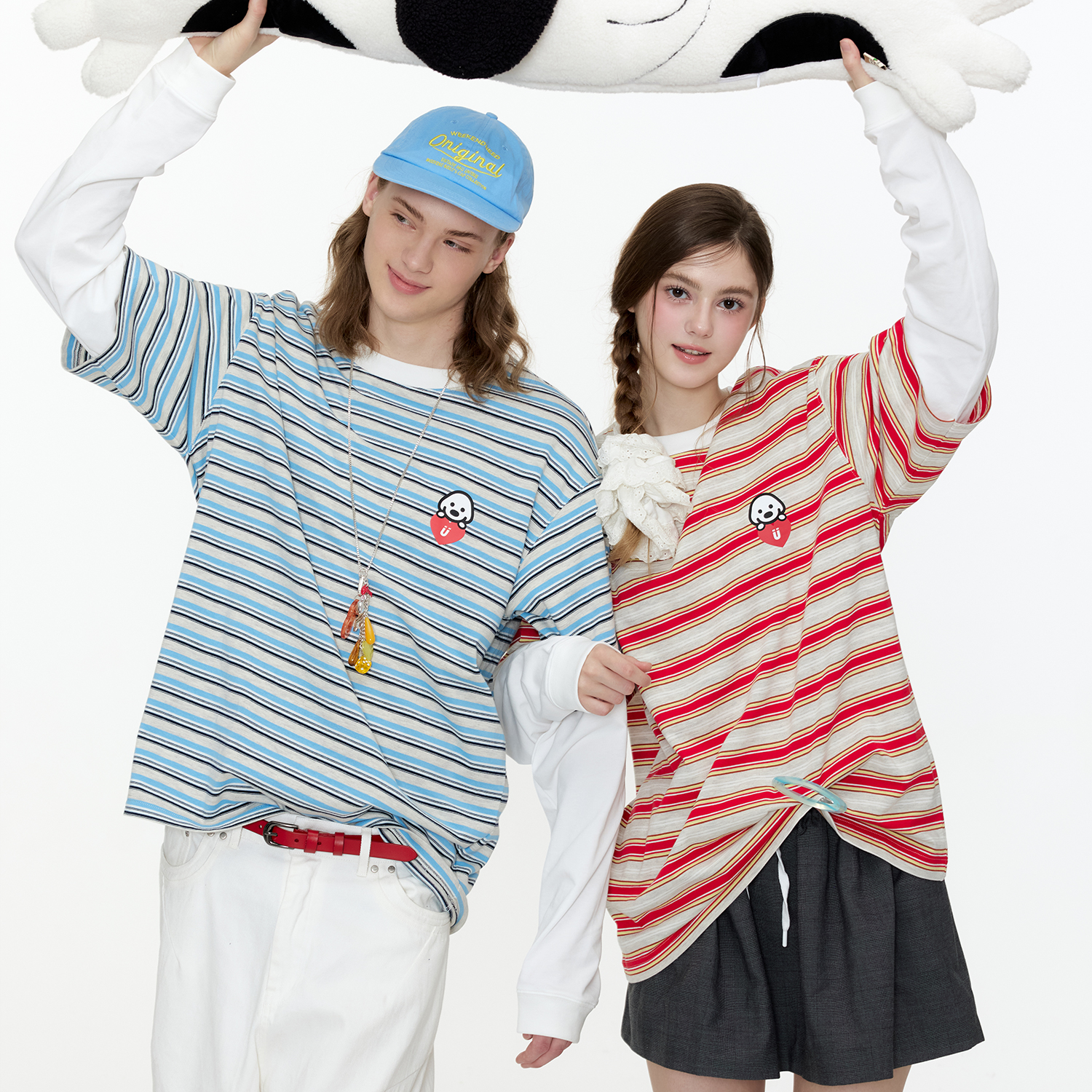 秋情侣条纹上衣 男t恤 杨博文同款 GUUKA&matsui联名小狗假两件长袖