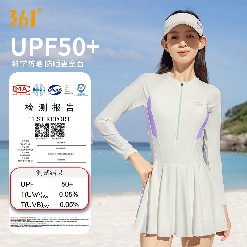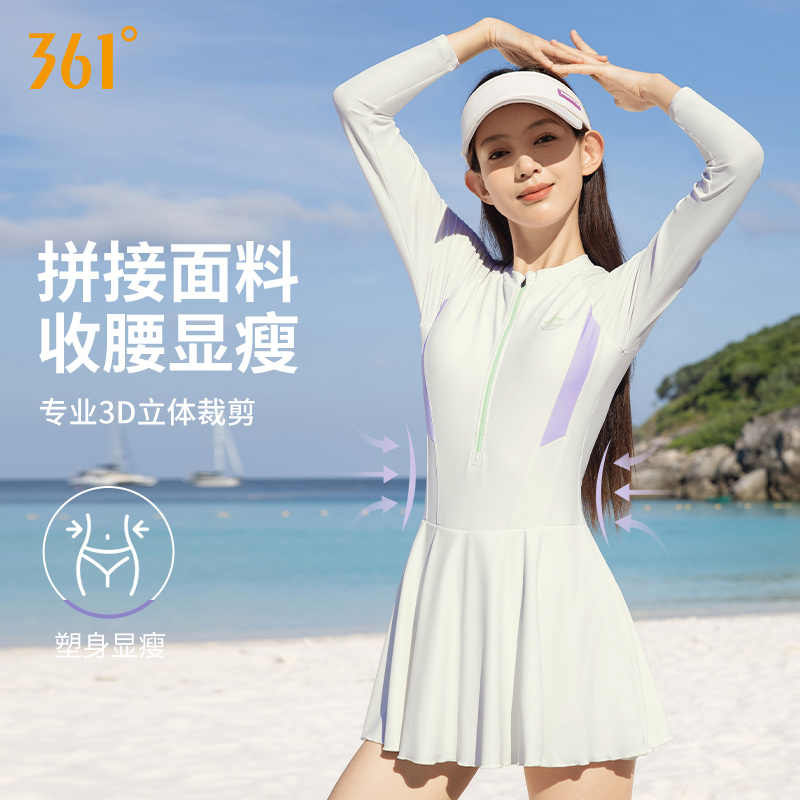泳装 361泳衣女2025新款 连体裙式 防晒大码 高级感微胖女孩遮肉长袖