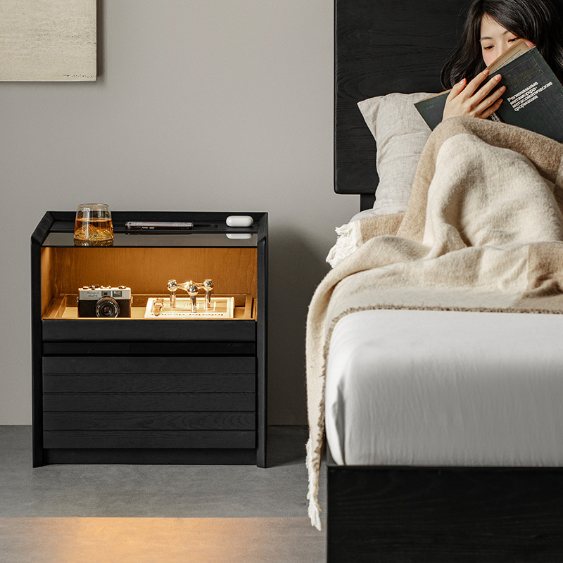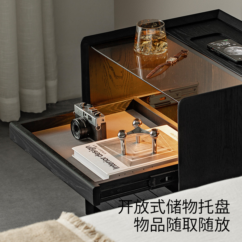 高级感实木床头柜黑色侘寂风床边柜简约现代储物卧室简易收纳柜子