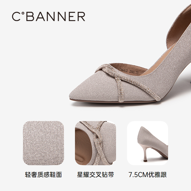 2025夏季 凉鞋 新款 宴会尖头浅口细高跟时装 婚鞋 千百度中空半凉女款