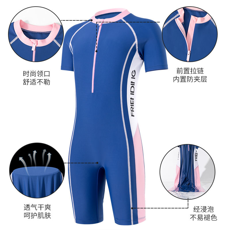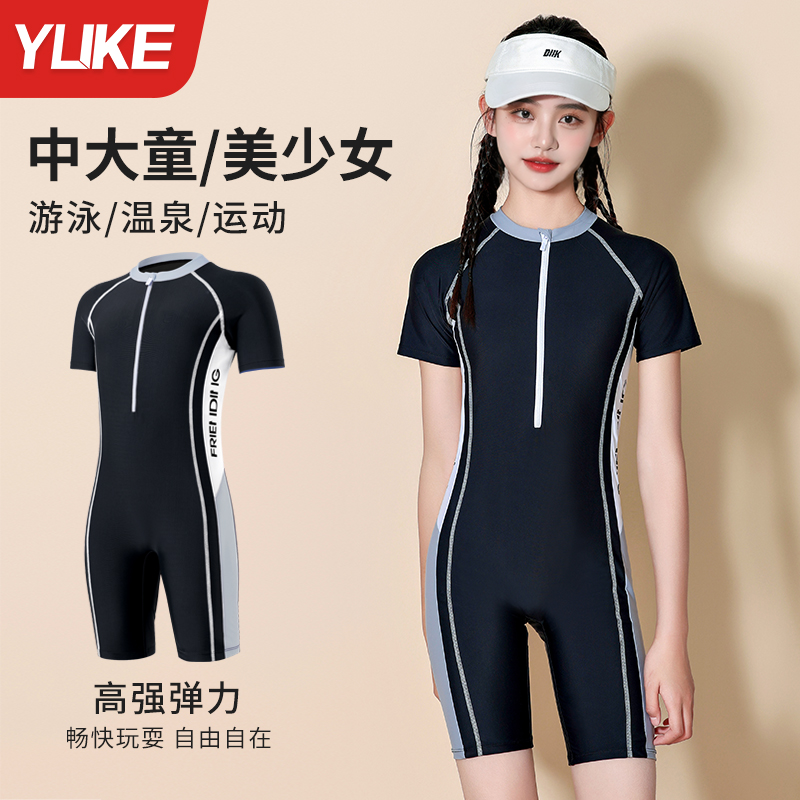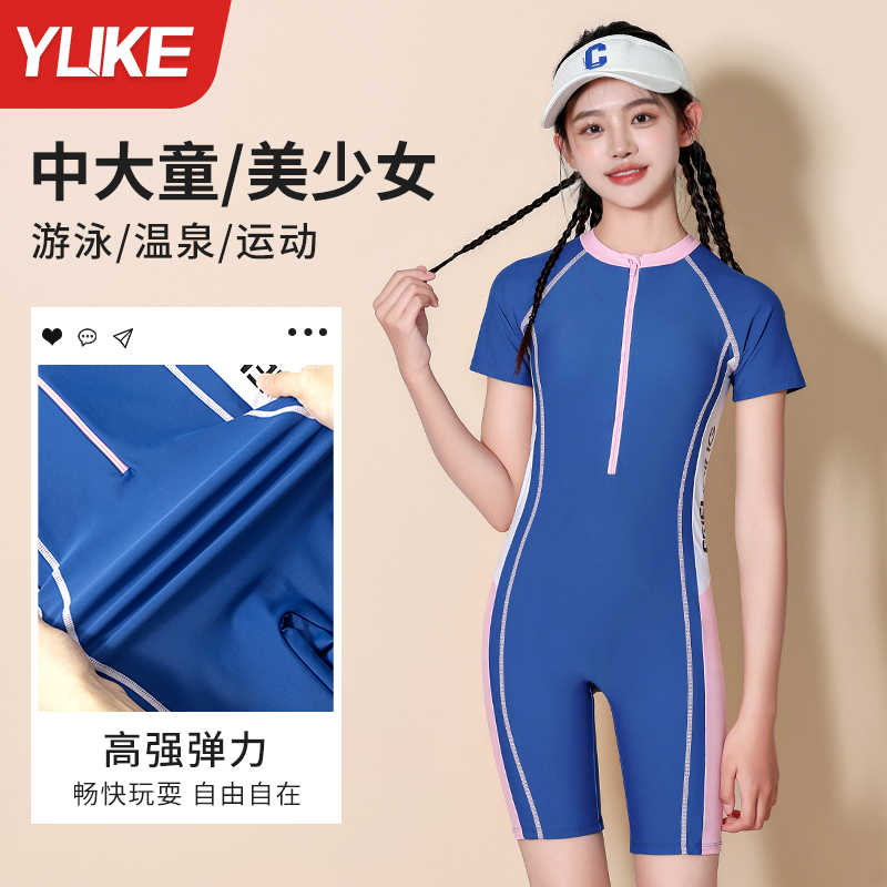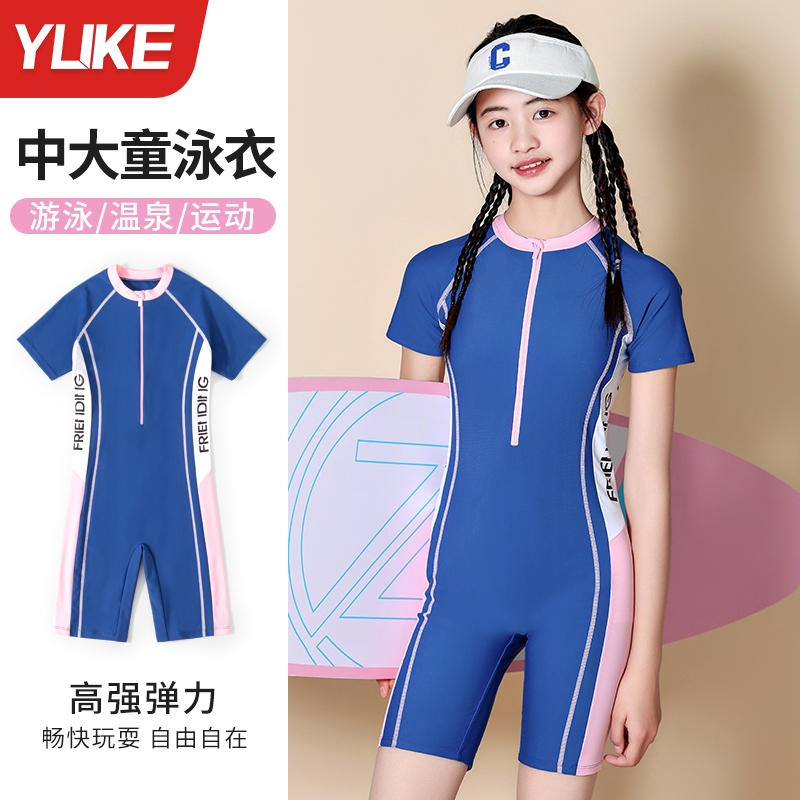 羽克女童连体泳衣2025新款 中大童女孩保守专业训练游泳衣套装