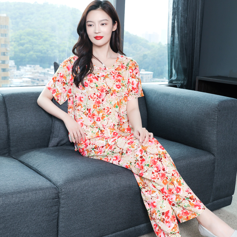 七分裤 短袖 大码 夏天女款 芬腾睡衣女士夏季 甜美家居服套装 纯棉薄款