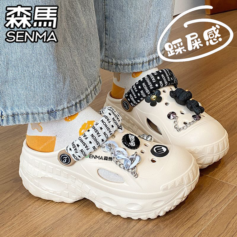 踩屎感两用沙滩凉鞋 森马洞洞鞋 外穿厚底增高可爱包头拖鞋 夏季 女款