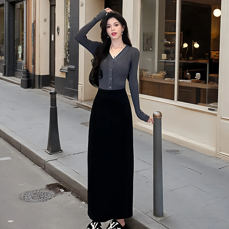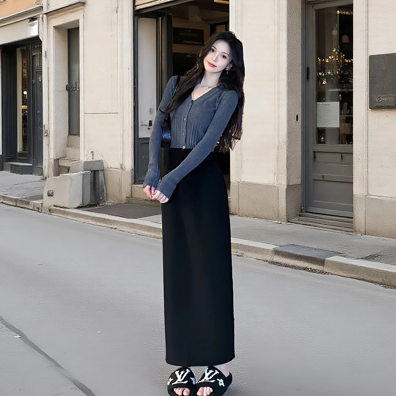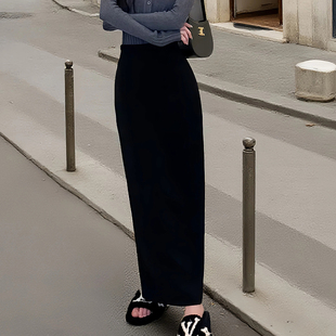 西装 开叉半身长裙子高级感 垂感半身裙女夏黑色a字裙高腰显瘦长款