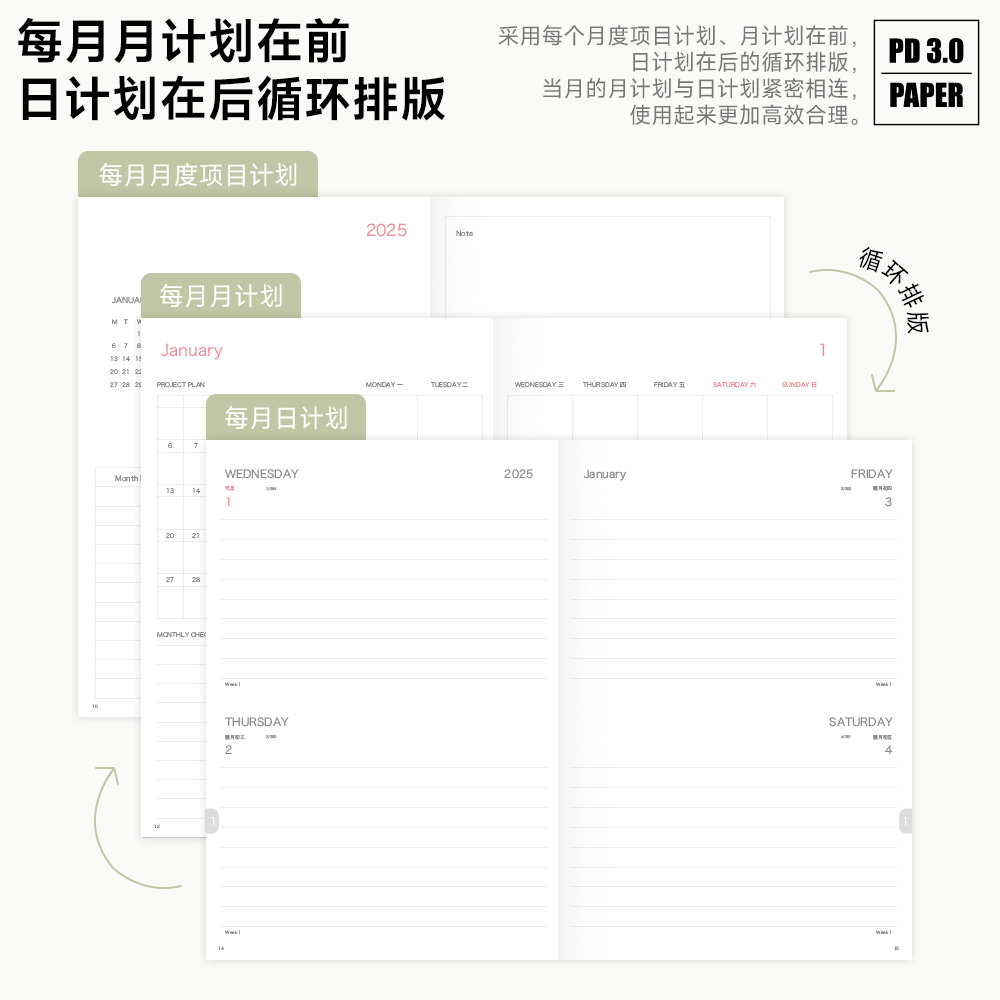 Planwith2026年日程本一日一页计划本效率手册高颜值ins风笔记本本子2025日程表日历记事本每日月日记手帐本