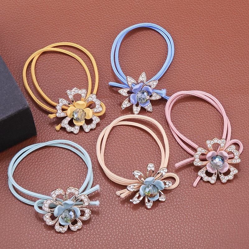 韩版 网红水钻花朵手工打结编织发圈发绳甜美头绳橡皮筋扎头发饰