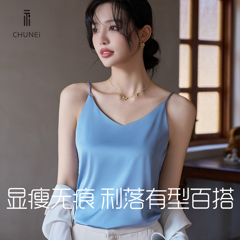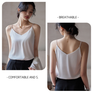 打底显瘦透气V领上衣 无袖 初内白色吊带背心女内搭外穿夏季 薄款