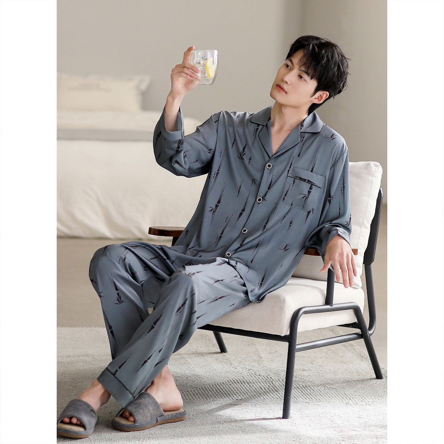 家居服套装 熊猫刺绣男长袖 秋冬纯棉抗菌防螨2025新款 有内睡衣男款