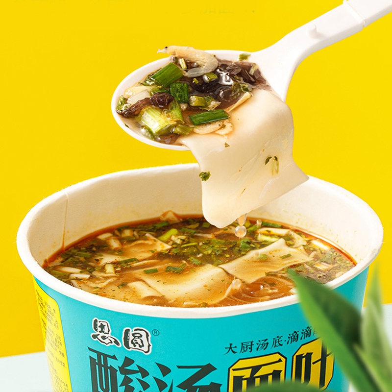 思圆桶装 紫菜虾米金汤肥牛味学生宿舍非油炸免煮夜宵整箱酸汤面叶