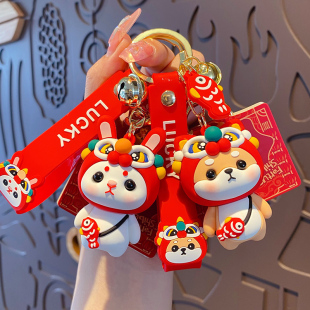 正版 醒狮呆萌兔小柴犬汽车钥匙扣挂件女精致网红书包挂饰男钥匙链