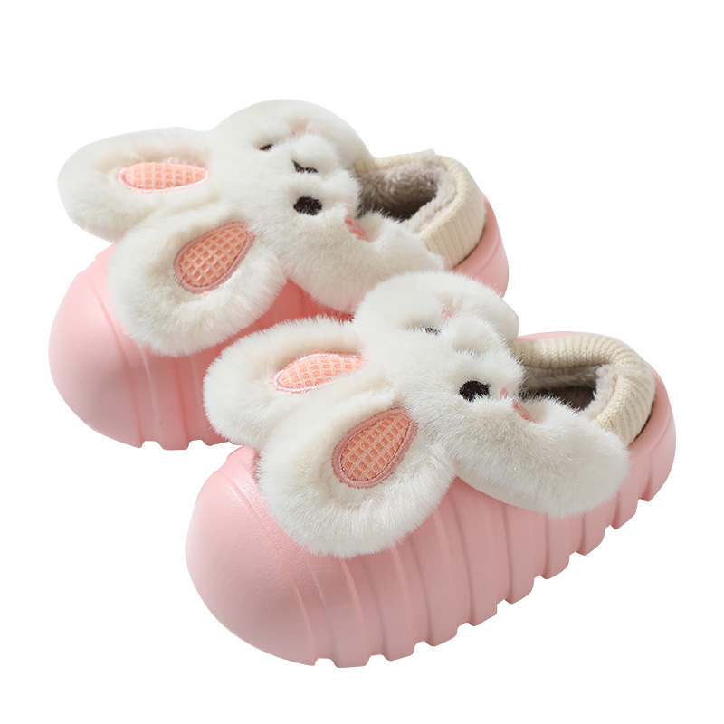 防水可爱兔子儿童棉拖鞋 包跟冬男女童可拆卸家居室内防滑宝宝棉鞋