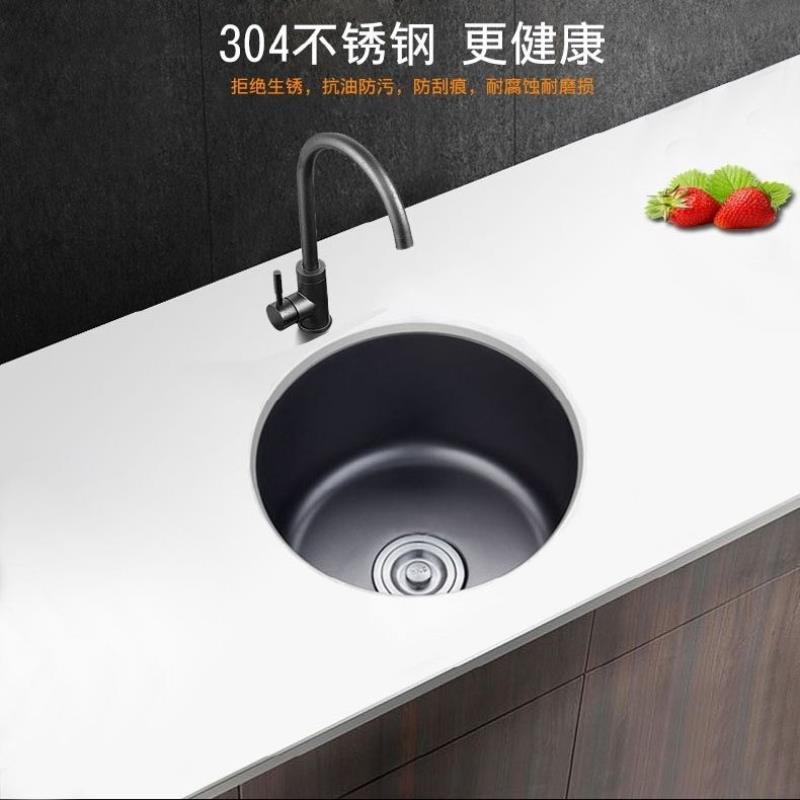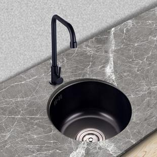 黑色纳米圆形迷你小号水槽单槽304不锈钢吧台阳台厨房洗菜盆台