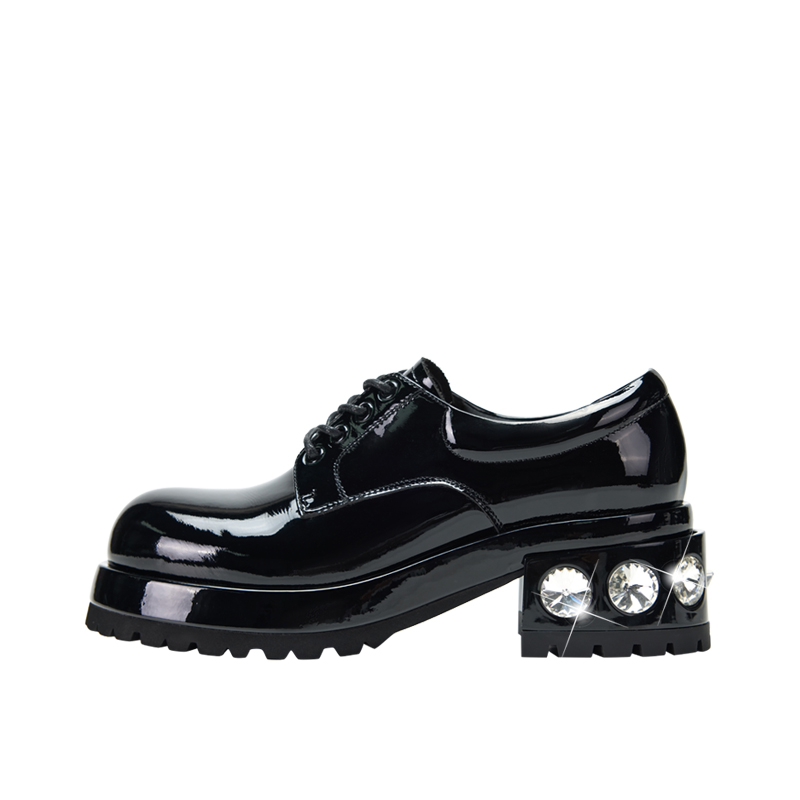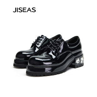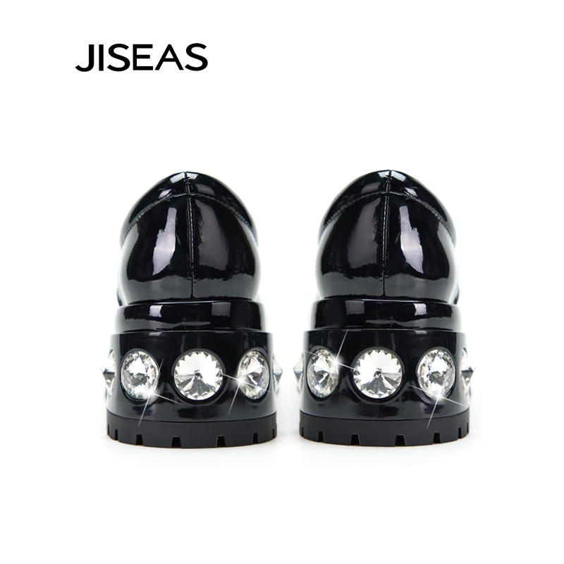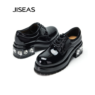 水钻增高休闲粗跟单鞋 JISEAS厚底乐福鞋 真皮系带时尚 新款 2025秋季