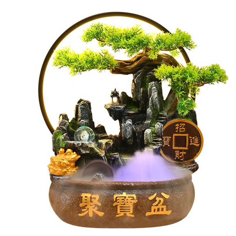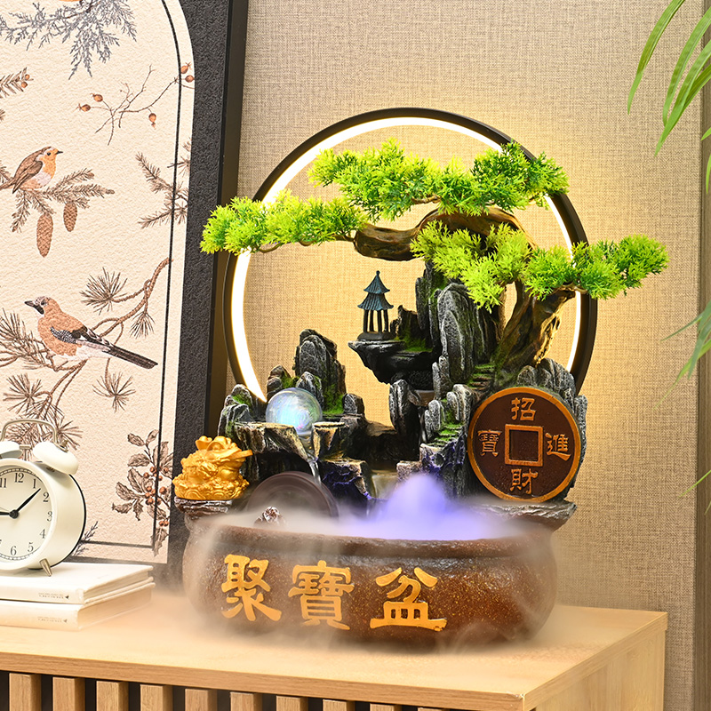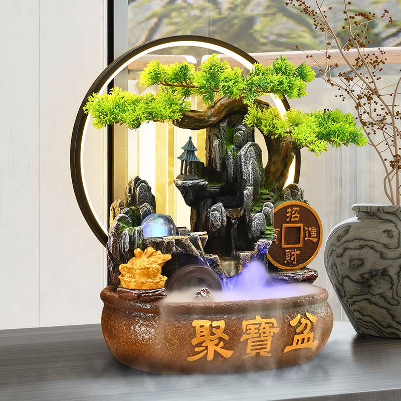 客厅流水摆件循环水聚宝盆办公室前台喷泉风水轮装 饰开业乔迁送礼