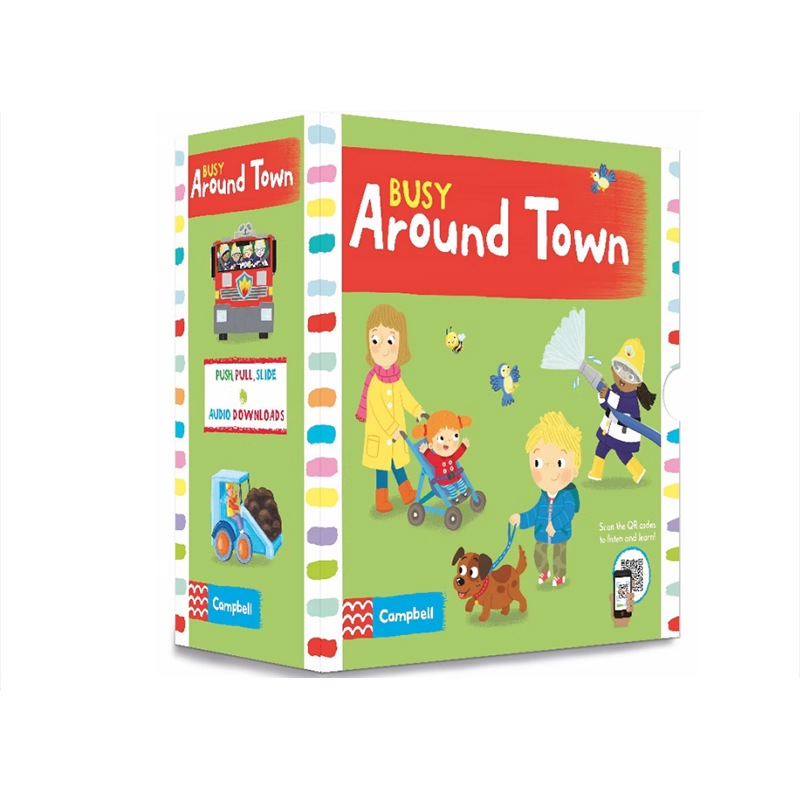 BUSY AROUND 儿童推拉滑卡舌益智机关游戏图画故事儿童绘本书籍 现货 DSN 带音频 英文原版 Busy忙碌系列小镇生活5册套装 TOWN