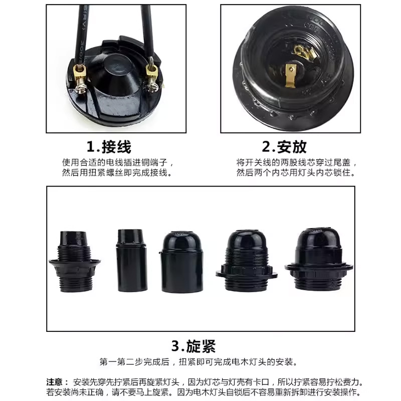 E27E14螺口灯头嵌入式 灯口灯具灯饰配件 灯座台灯落地灯壁灯卡扣式