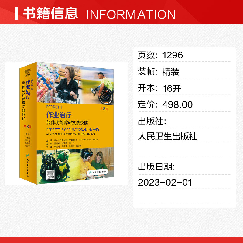 克罗恩 译 第8版 等 李奎成 编 温妮弗雷德·舒尔茨 海蒂·麦克休·彭德尔顿 美 躯体功能障碍实践技能 PEDRETTI作业治疗