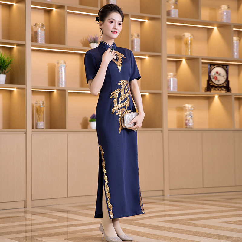 黑色刺绣旗袍2025春夏新款 走秀连衣裙 女复古民国风日常可穿新中式