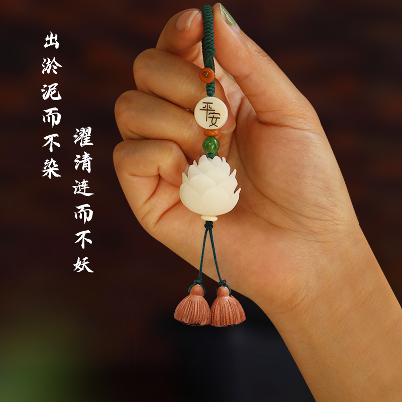 2025新款 天然绿檀木钥匙扣无事牌汽车小挂件木质本命年饰品礼物