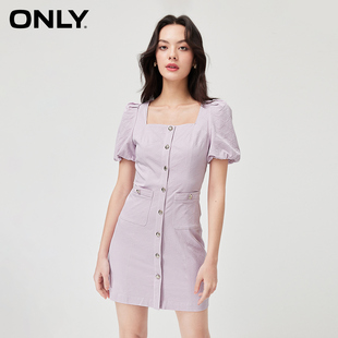 肌理感面料收腰A字黑白色长裙牛仔连衣裙女 显瘦无袖 ONLY夏季 新款