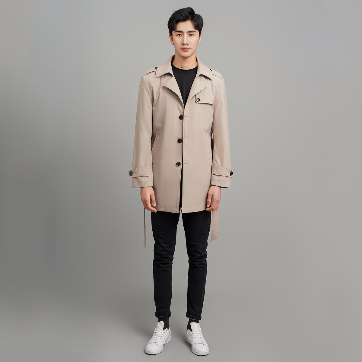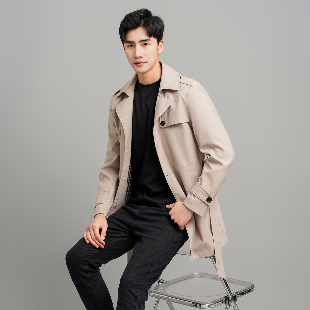 夹克风衣英伦风商务休闲 卡其色男士 雪中飞2025春秋新款 翻领中长款