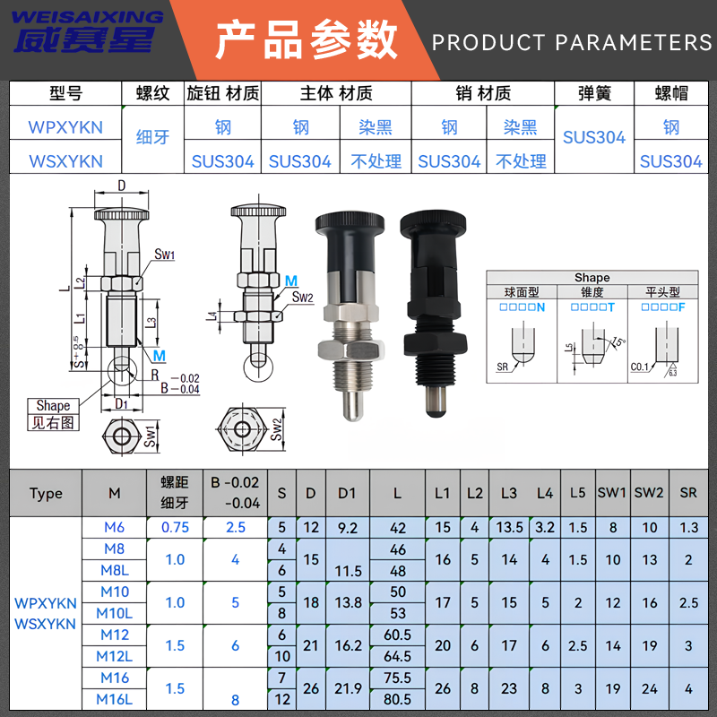 304不锈钢自锁型旋钮柱塞分度销定位销弹簧销子止动销卡销限位销