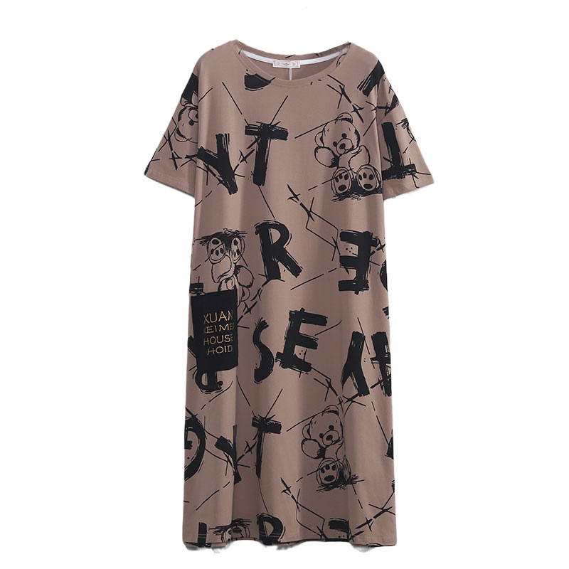 连体睡衣家居裙可外穿 睡裙200斤女纯棉宽松圆领短袖 夏季 胖mm大码